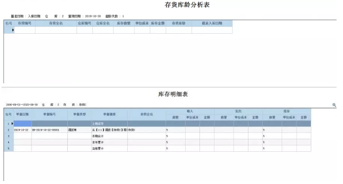 例如,存货C没有期初末结算单,在10月从别的仓库调入5个,后续没有其他入库类单据,以入库时间为基准,时间设置为10月15日,超龄1天,库龄分析将不会显示该存货和数量。