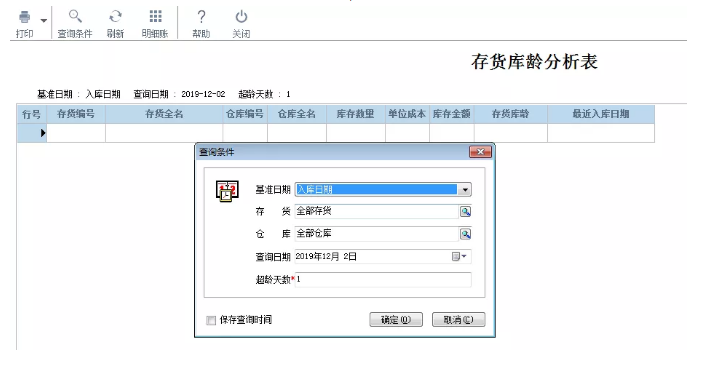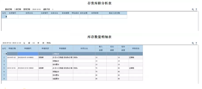 例如,库存A在7月入库10个,11月入库70个,以入库时间为基准,将时间设置为10月1日,超龄1天,那在库龄分析中则不会显示该存货。